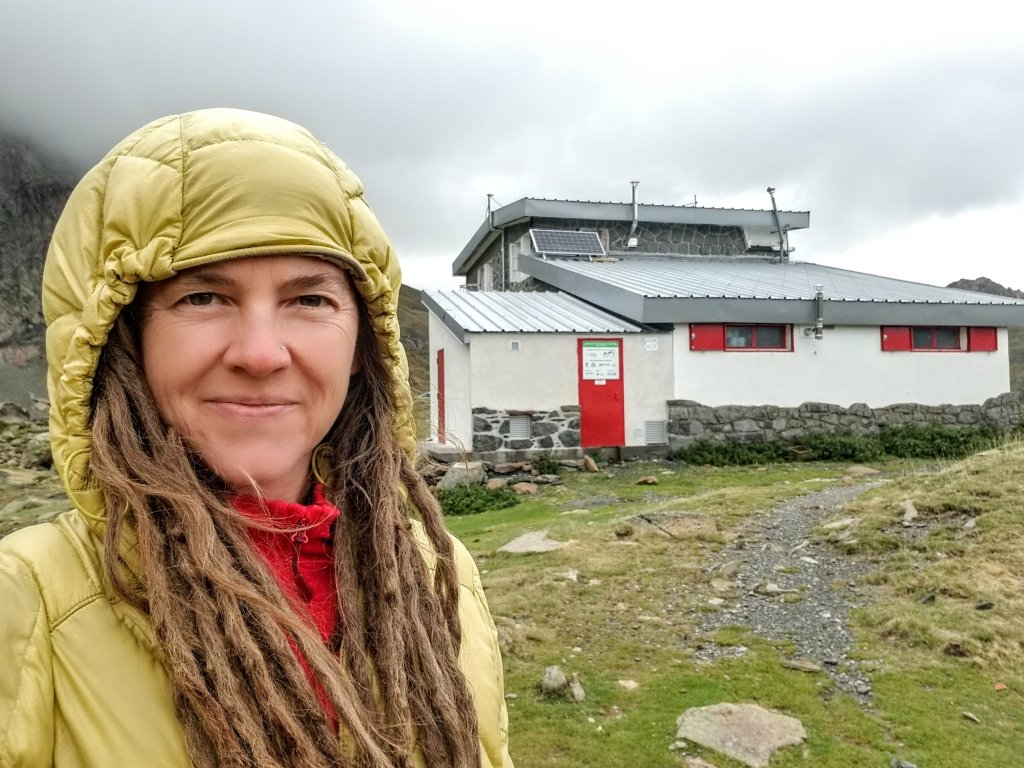 Minutes later the mist parts just enough that I can see the Refuge! Ahhh, that is a sight to behold! I am so happy, relief washes over me and I feel saved. My upper body is soaked through and I can’t believe what crap my rain jacket is. Figures. I bought it used in Flagstaff when I hiked the Arizona Trail three years ago and I probably should have chosen a better piece of equipment for these mountains. I vow to purchase only Goretex from now on.