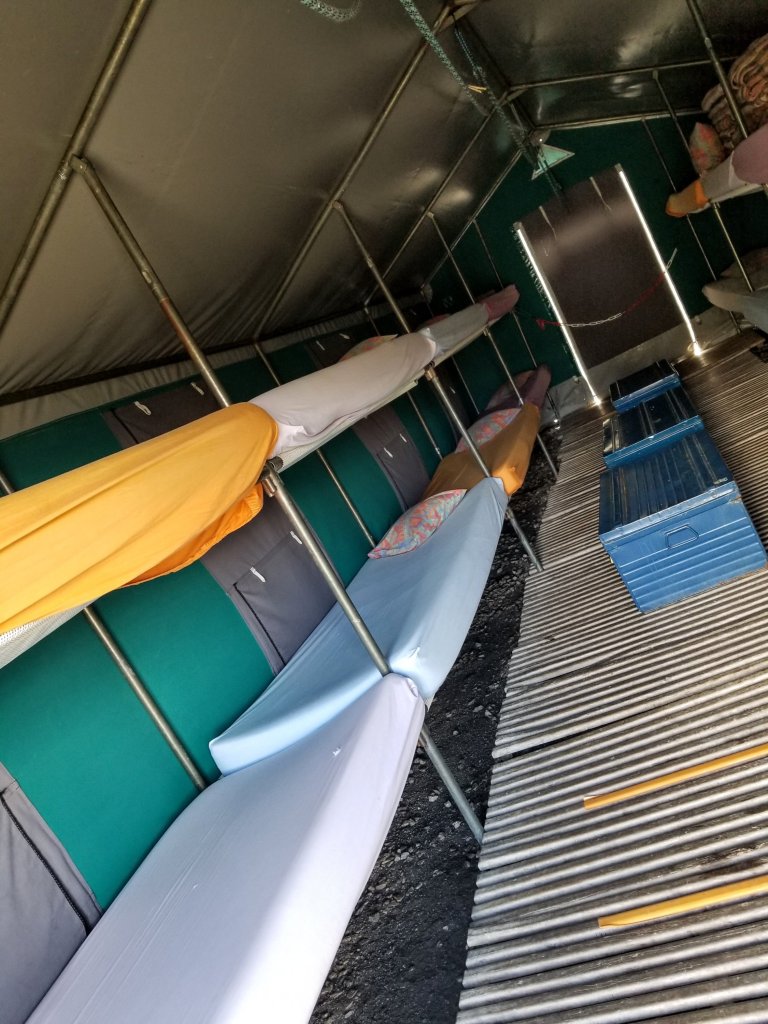 I sleep surprisingly well. Maybe it was the wine. Haha, though I could hear snoring sounds through the night, it didn’t bother me and I covered my eyes with my buff, so it was like I was in my own little cacoon of my self. I ended up counting 15 people in the room on the three levels of bunk beds, five on each. I tell ya, I have never experienced sharing a mattress with strangers like this and it was better than I expected. Even though the guardians told us breakfast was at 7:00am I sleep until 7:22am and Anna and Daniel are also cuddled up next to me asleep when I get up. Can’t miss breakfast, gotta go!