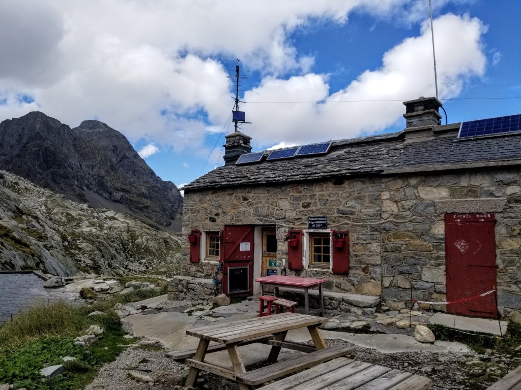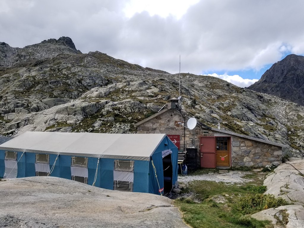 The guardian speaks almost no English and I do my best to speak with him in French and it works! He has wild hair and you can see the mountains in his eyes. I peg him for a climber. He says we are to sleep in “Le Grand Tent” which is a canvas tent with beds outside. It’s not the most inviting, but I am okay with it as you get individual beds and it’s sheltered from the wind. The girls did not luck out and they will have to find a place to bivouac. They are sharing a tent and it’s a double wall MSR so more sheltered than mine on a windy night.