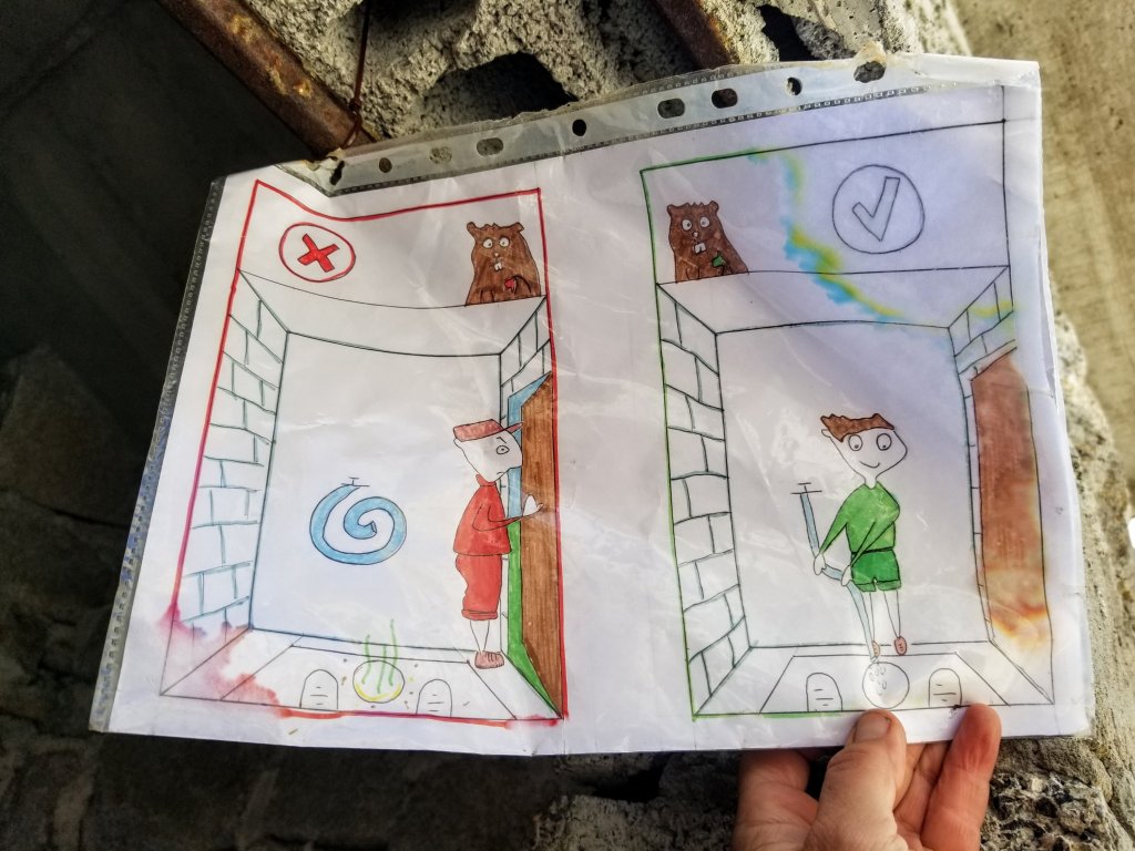 Along the way down and out of the forest, I pass by a sign with a comic strip cartoon drawing of the Shepherd Dogs (would that be a good band name?). It’s pretty funny yet I appreciate that it exists since I may be confronted by one of these Pyrenean Dogs at some point and I’ve heard they can be really aggressive. I guess you are supposed to keep calm, let them sniff you, don’t make eye contact and don’t run. Makes sense. My luck with the one’s I’ve seen so far has been favorable. Before long I see a herd of sheep crossing a bridge below so I stop and wait for them to pass. One strategy to avoid being attacked by a Shepherd Dog is to avoid them all together!