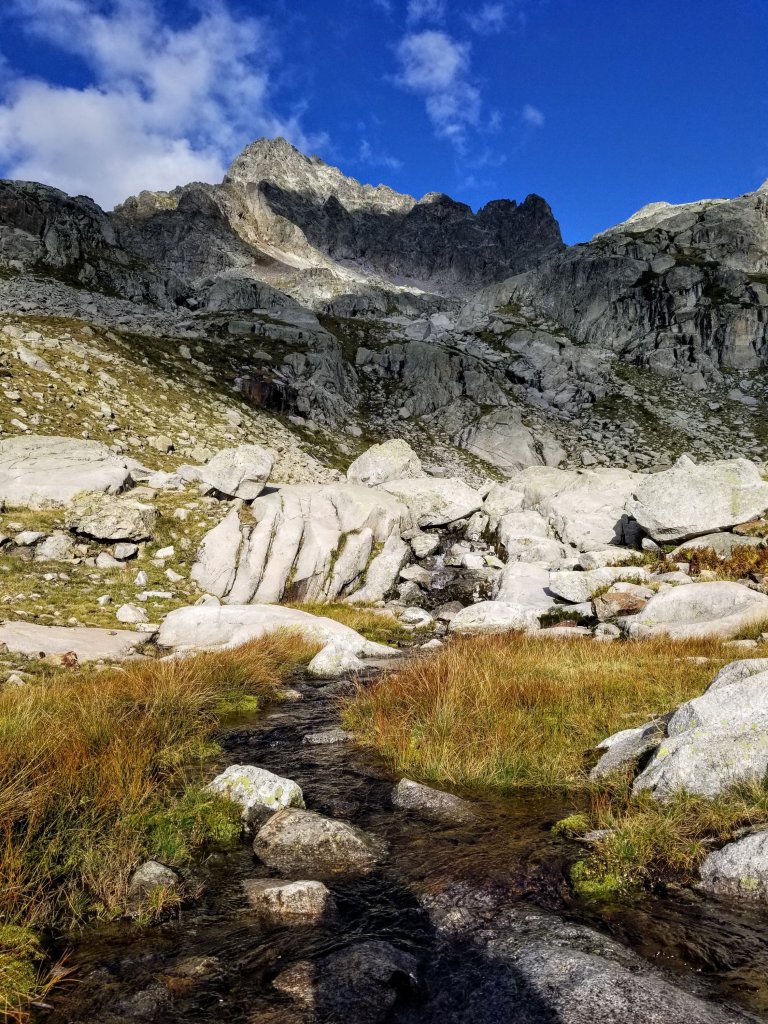 I decide to take a walk around the area as I learned there are several other places one could bivouac. I want to also take a look at my routes for tomorrow so I have an idea of where they each go. I spend the better part of an hour meandering in my crocks and sleep socks, walking very gently on the Earth, scrambling over sticky granite rocks and jumping over water courses. The sun comes and goes from behind the clouds and the wind dies down for a long time. This is super dreamy and it makes me want to spend the night out here. But I know this perfect feeling is temporary, so instead of changing my plan, I sit down and soak up the sun, listen to the waterfalls and enjoy the peace and serenity. These moments are part of what I came here for.