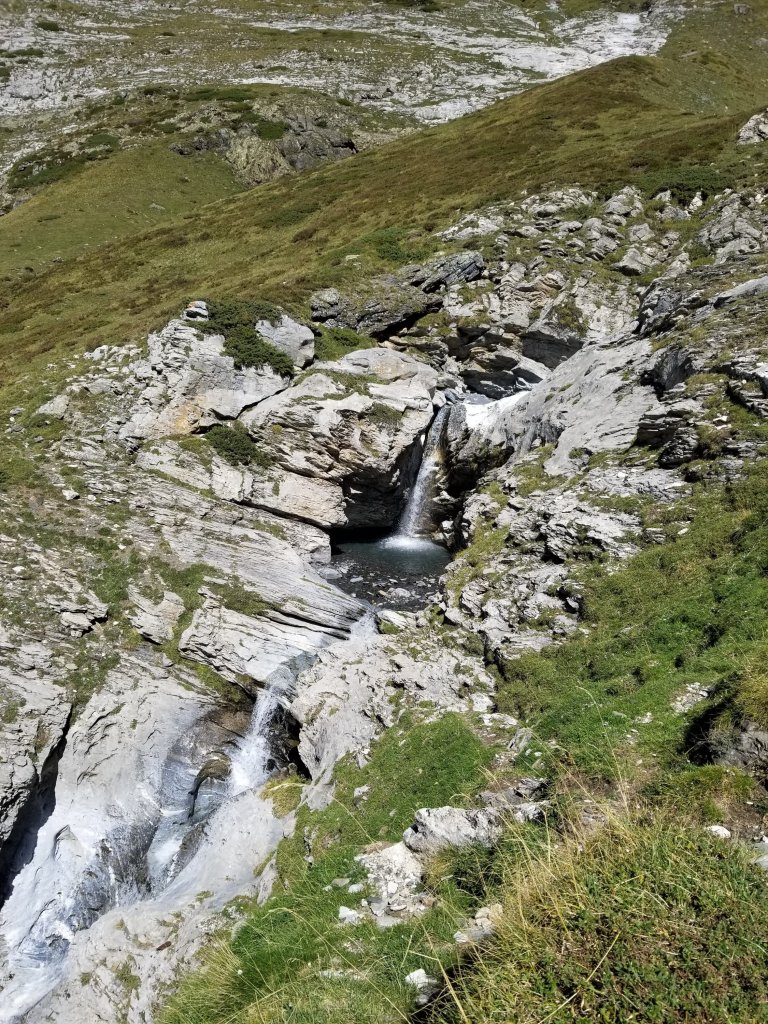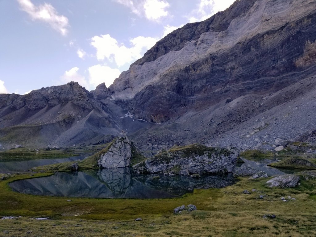 I eat another snack and continue, eager to make it to the Barroude Lakes area where the Barroude Wall towers over the basin. It is a feature I am excited to see. I delay my own progress however by dropping too much. I should have turned right and instead saw a group of people down below and just followed them. Again! I was curious about them, as there were 18 of them and mostly dressed in black, such a mystery. They seemed young too but I couldn’t really tell. After a fair bit of descending I got that instinctive feeling that I was not on track and sure enough, I’d missed my turn and had to backtrack uphill again. Oof!