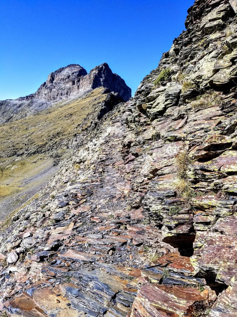 Route finding is a little tricky up to the Horquette de Heas just as the guideook said it would be. It’s just a little wedge in the middle of a huge ridge, and the trail tread disappears the closer you get to it. There is a lot of shale up here and so it’s loose but nothing crazy. The views are not too shabby.