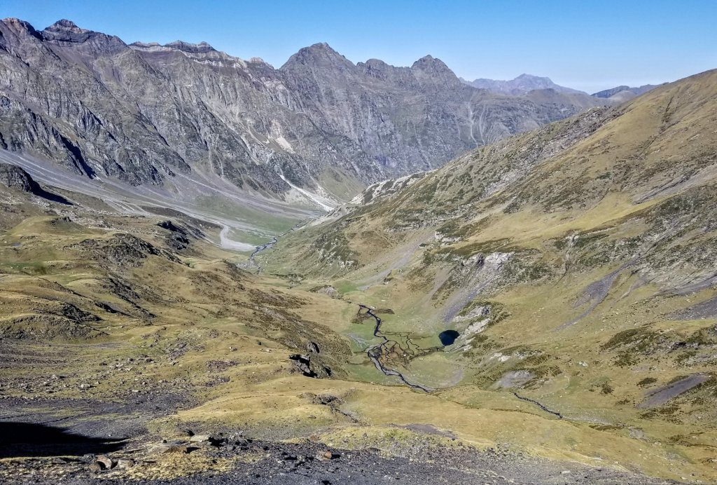 Horquette de Heas at 8,556 ft (2608m) is the narrow gap ahead