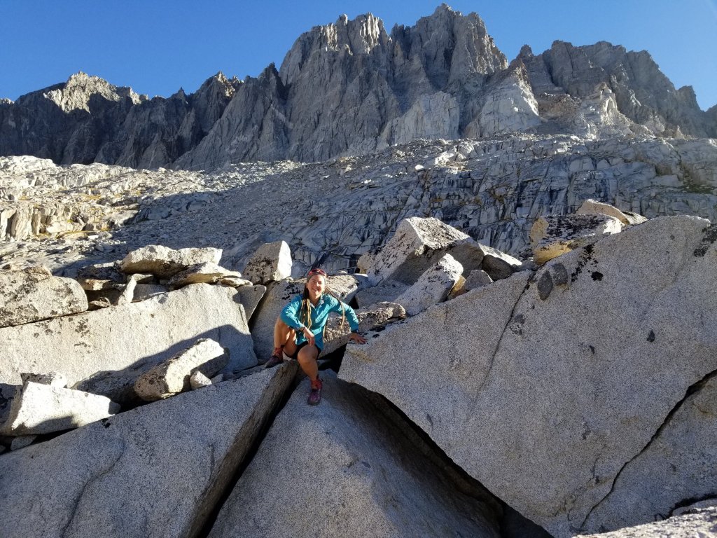 We reach Bishop Pass at around 4:00pm, neither of us has been above 9,000ft since July and I have to say with my jet lag I feel slightly lightheaded. We take off our packs and enjoy the views for a spell. Our conversation flows from one topic to another and I say to her how I feel like we’ve spent a lot more time in the back country together than we actually have.