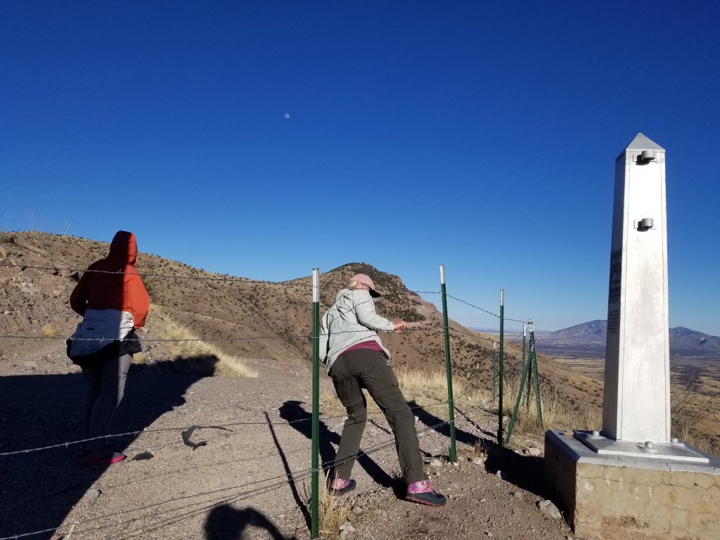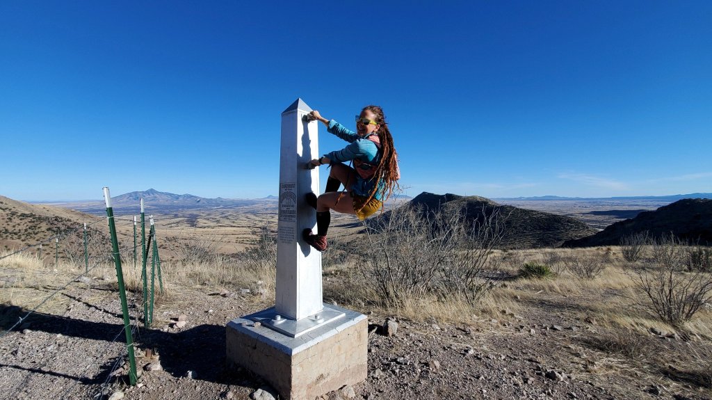 In the parking lot at Montezuma Pass there is another hiker with a dog, their names are Oliver and Twist. They are getting ready for their Nobo hike too. We set off around 4pm down to the border to tag the silver Obelisk that sits just beyond the fenceline with the US on one side and Mexico on the other.