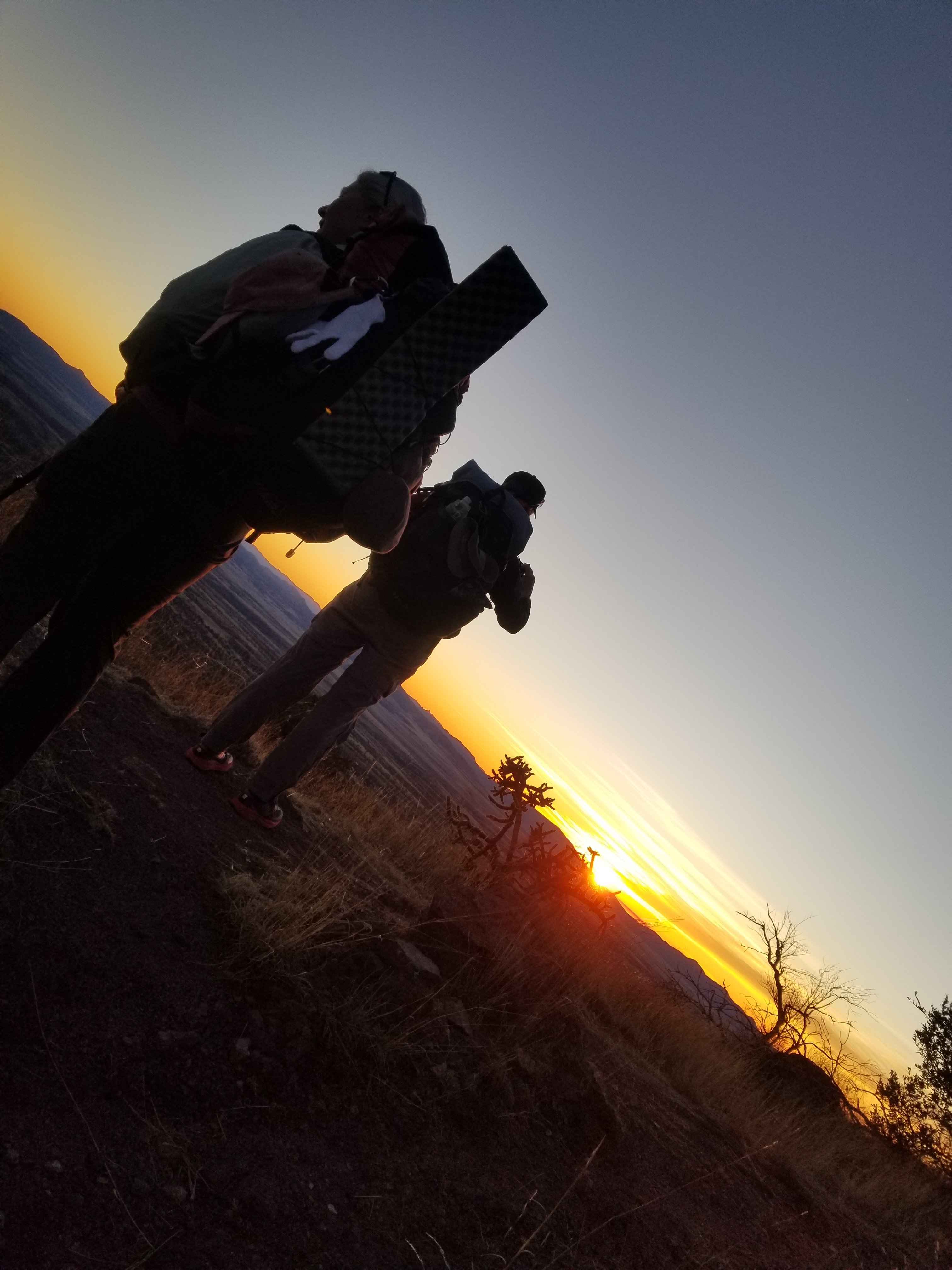We hike out and start climing the mountain until just around sunset when the great ball of fire is dipping beneath the desert horizon. There ain’t much camping here but we make do with what there is, trying to duck out from the frigid wind. Our spot turns out to be great and we witness the planets come out in a perfect line in the sky as night settles in like a blanket over the heavens.