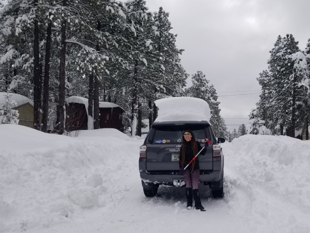 As of this morning we had decided the bike alternate was the best and safest choice. Along the drive, however, Kristy’s trail connection, a hiker named Nick who went up today, has been texting her with updates on the trail conditions, which is so amazing. Now he is apparently a very experienced hiker and a little bit on the extreme side, though we know he can hold his own. He gives us a report of 11 miles of snow and 1-2 hours of postholing but he made it through unscathed. We have footprints to follow! Thus we decide to wear traction and take the mountain route and we are all excited for this adventure and challenge.