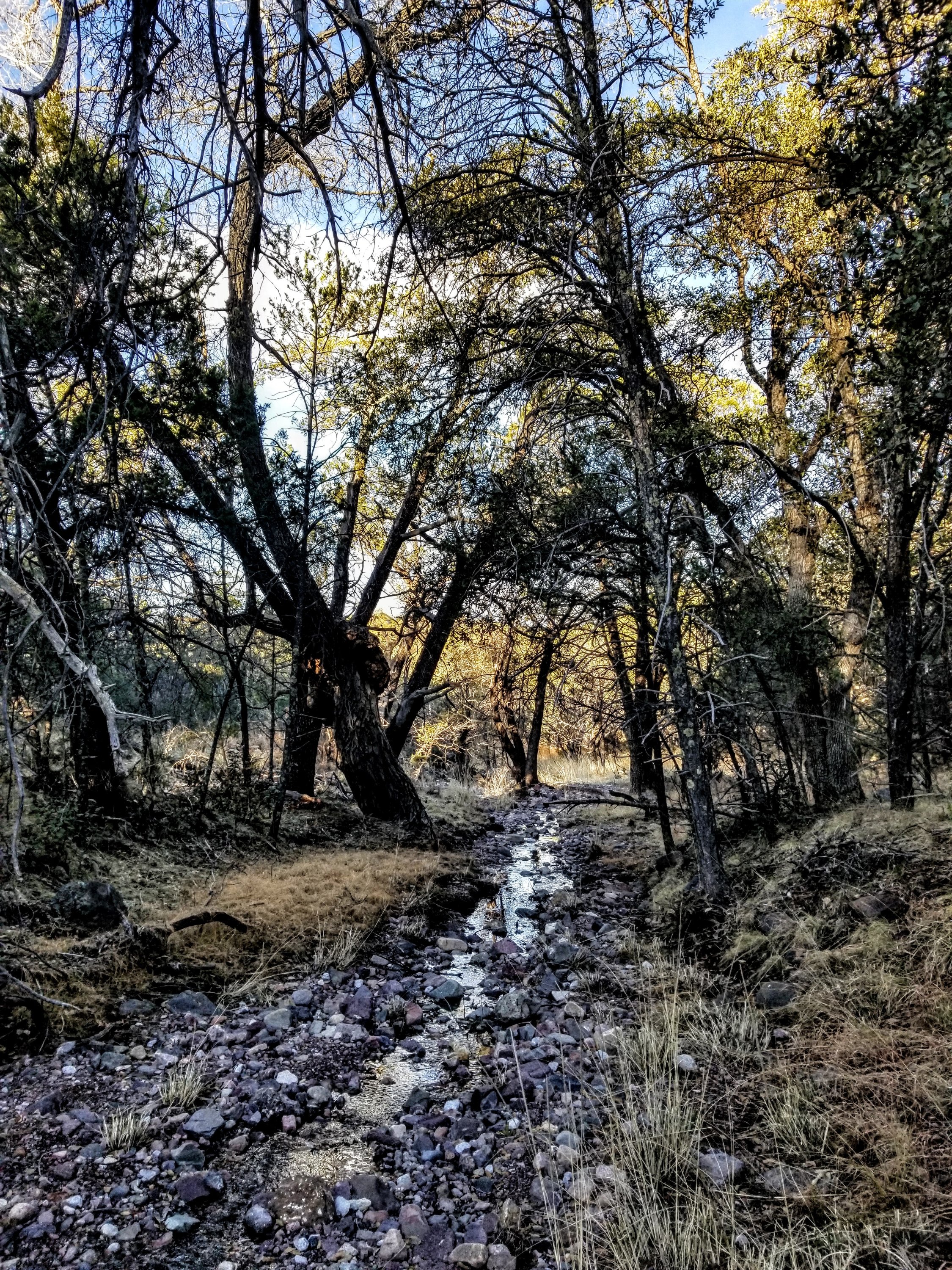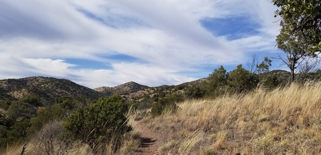 When we get back to the AZT we calculate we have a ways to go yet to get to Patagonia and decide we shant take any further side trips like that one. Thus we continue. Now we follow along a stretch of trail that is beautiful albeit a little monotonous. If I recall correctly, I remember walking this section in the late afternoon sun when the angle of light was low and I was feeling mentally fatigued. Whenever trails are flat and the walking repetative I tend to get sleepy, falling into a lull. I suppose that’s the brain switching out of high beta and actually relaxing. This can happen on a trail no matter how much coffee you’ve had.