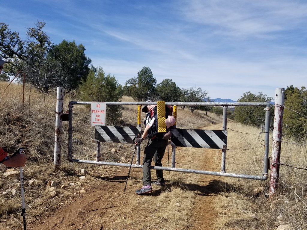 Soon we are on a dirt road that will lead us to the Parker Lake Marina and we decide to take a detour and check it out, thinking perhaps we can sit and eat lunch there. The directions someone wrote in the FarOut comments are very helpful and include the description of having to shimmy through a gate. Now we have designated Pesky as the official Gate Keeper on the AZT cuz’ she is so smart, she can figure them all out. But what we didn’t know is how good she is at shimmying. She must have had a lot of practice on the CDT.