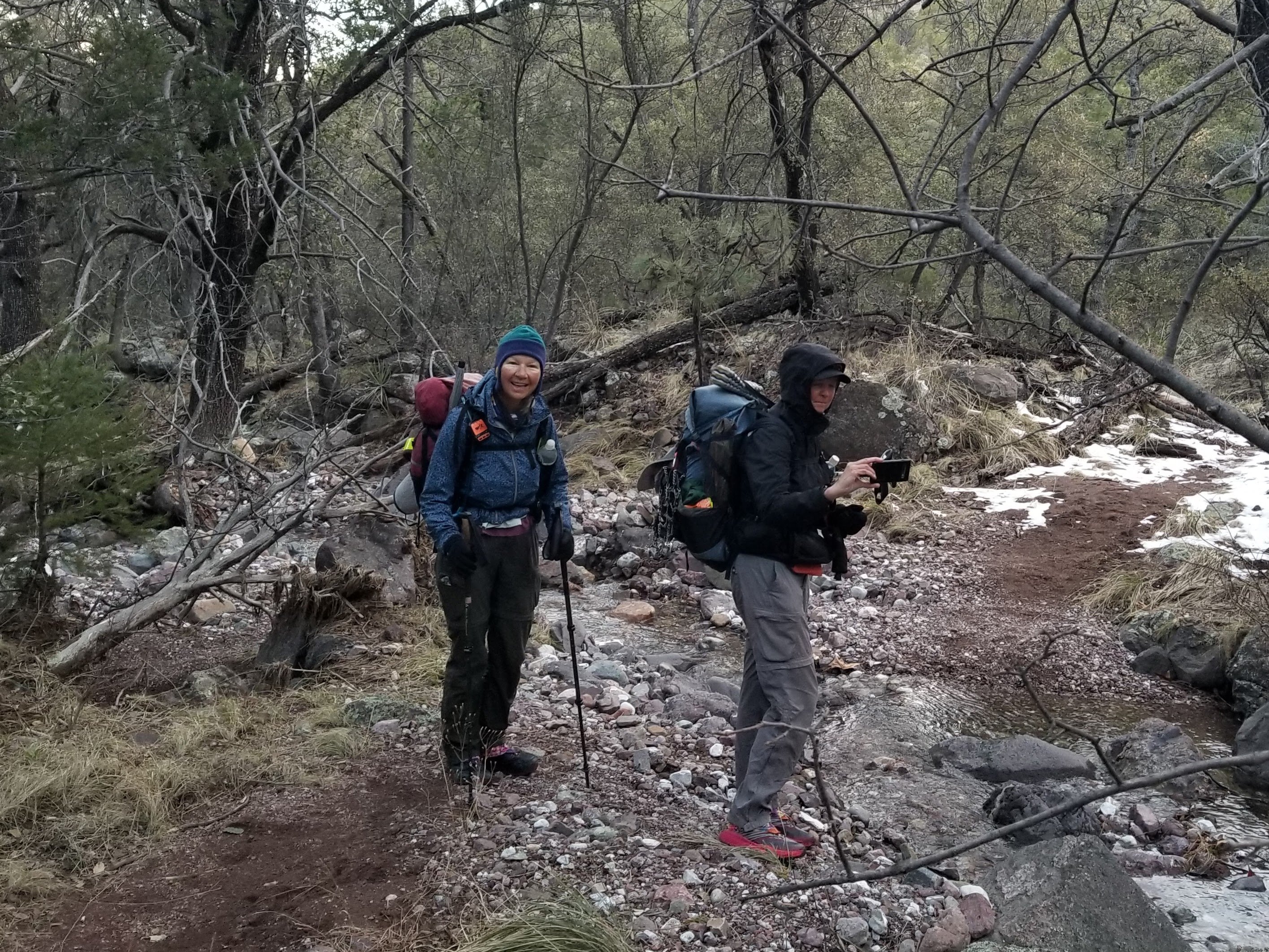 As our thru hiker brains are so well trained, we are checking the FarOut App for the next water, always concerned about how much to carry. Turns out, we are not needing to pay attention to water sources as much as we anticipated, as there seems to be one every few miles or so. This is not the AZT of most years. There is seasonal flowing water where we don’t even expect it. That said, the silty water we drank last night really did a number on my water filter. I am using a Sawyer Micro and I tell you what, that thing worked great in the Sierras, I am not so sure I recommend it out here. I pre-filtered the water through a bandana and it still really got clogged up just after 2L really demonstrating it’s namesake “micro”. I had to back flush it several times already, so now I am definitely having to pay attention to the quality of the water I gather.