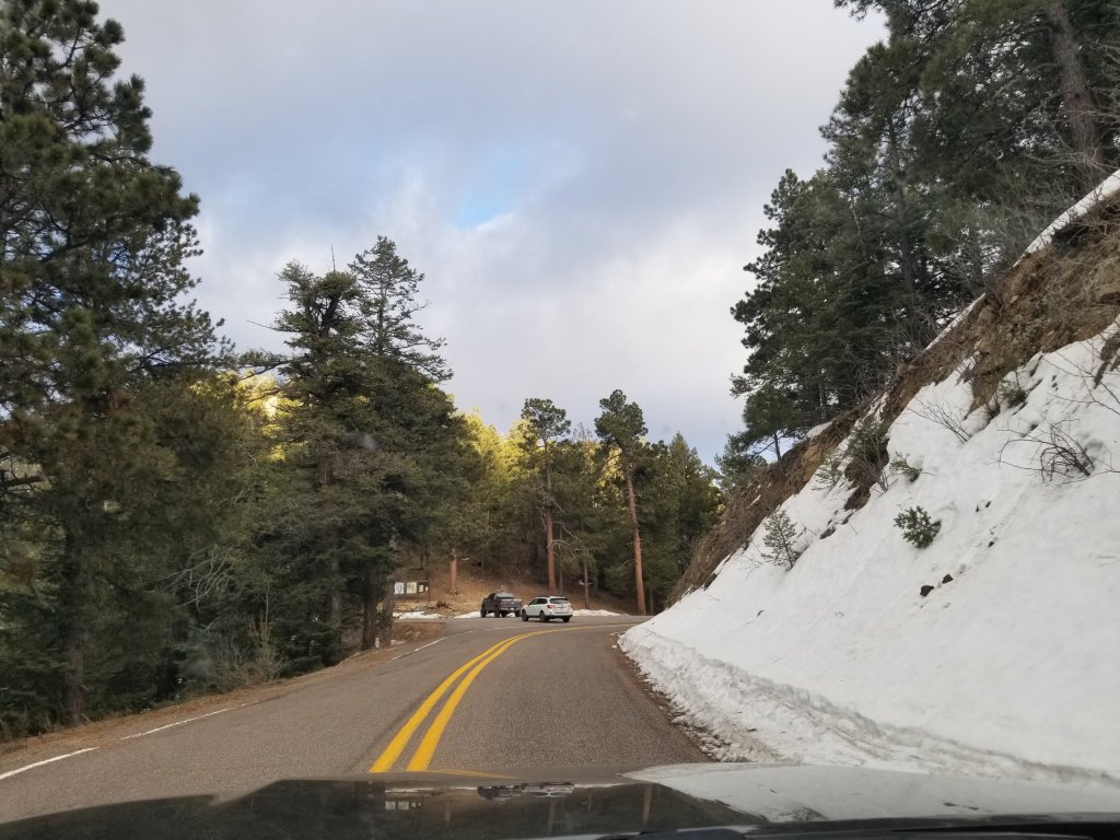 We immediately start to think up plans B and C, which does include heading to New Mexico to section hike the CDT. However, we decide to take a drive up to the Ladybug Peak Trailhead to see for ourselves. Along the way we start seeing snow at the 7,000ft level and it gets deeper and deeper. The road is amazing, reminding me of several of the roads up to TH’s in the Sierras.