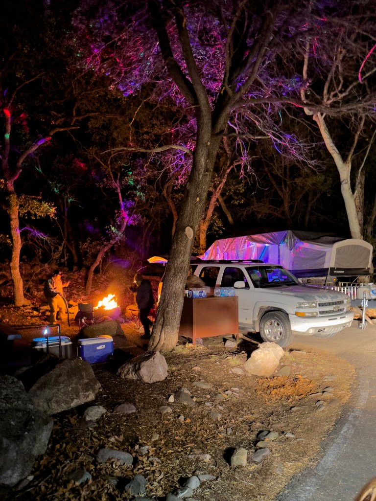 When we reach the Campground it is after 8:00pm and first we pull into a campground where people are having a disco party. Not kidding. We sit there aghast and take a couple photos. This is not normal. Or so we think!