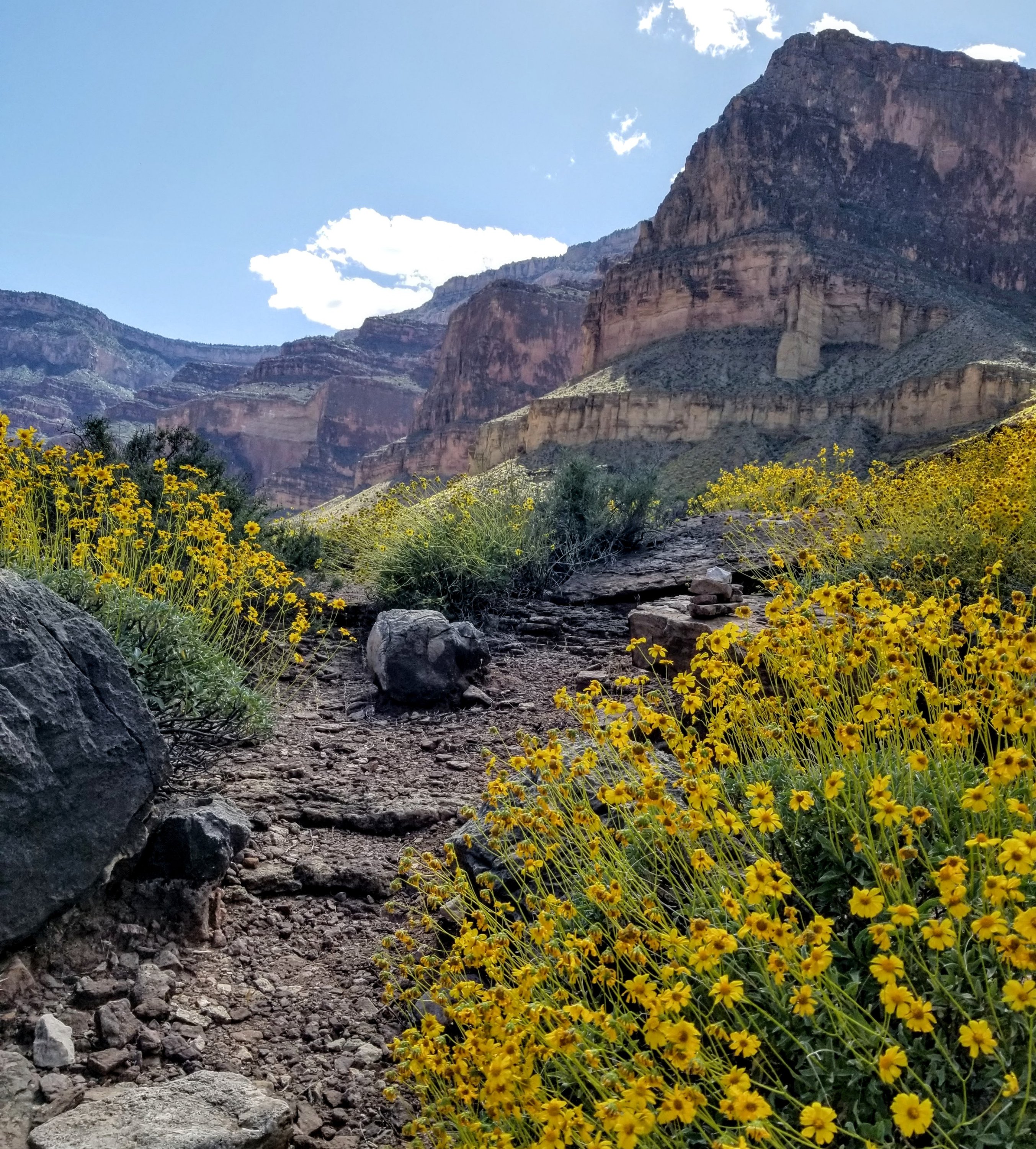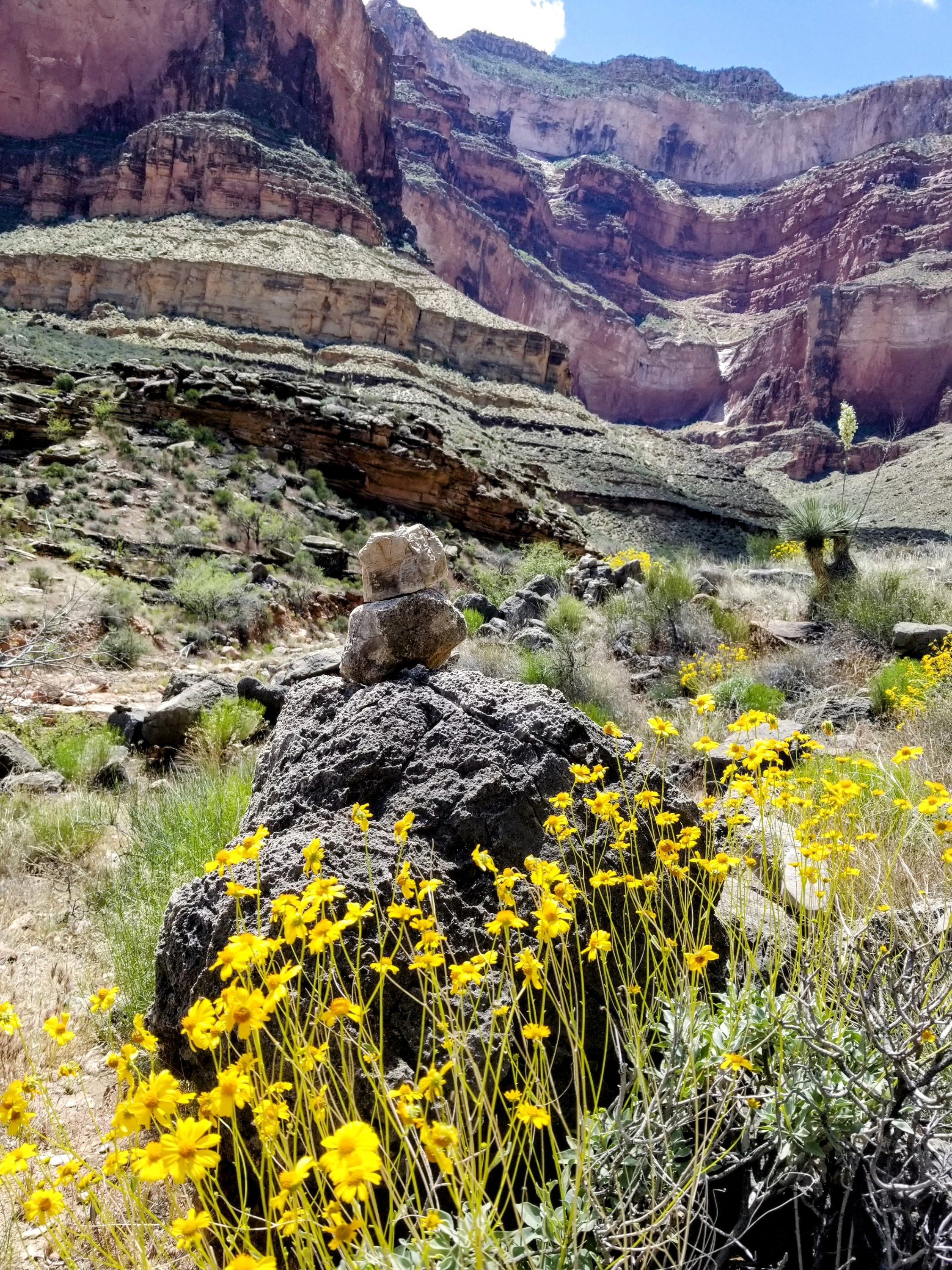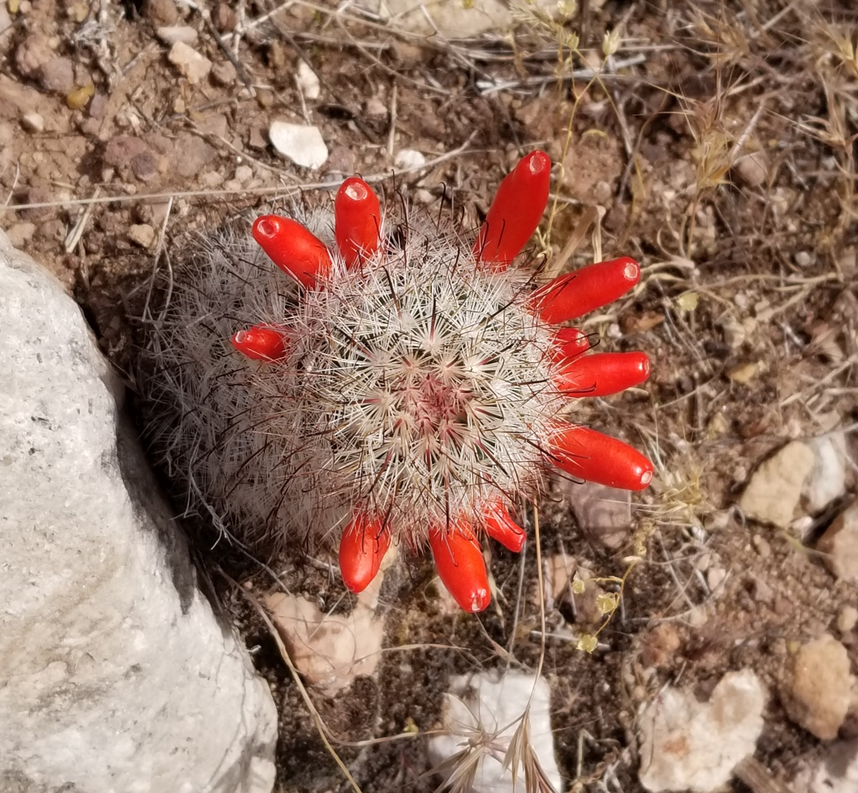 There are so many flowers smattered everywhere I can’t seem to get over it and I keep saying “this is not normal” over and over again. In the crossing of a side canyon we find the cutest little cacti that looks like it’s growing chili peppers. I am calling it the chili pepper cactus.
