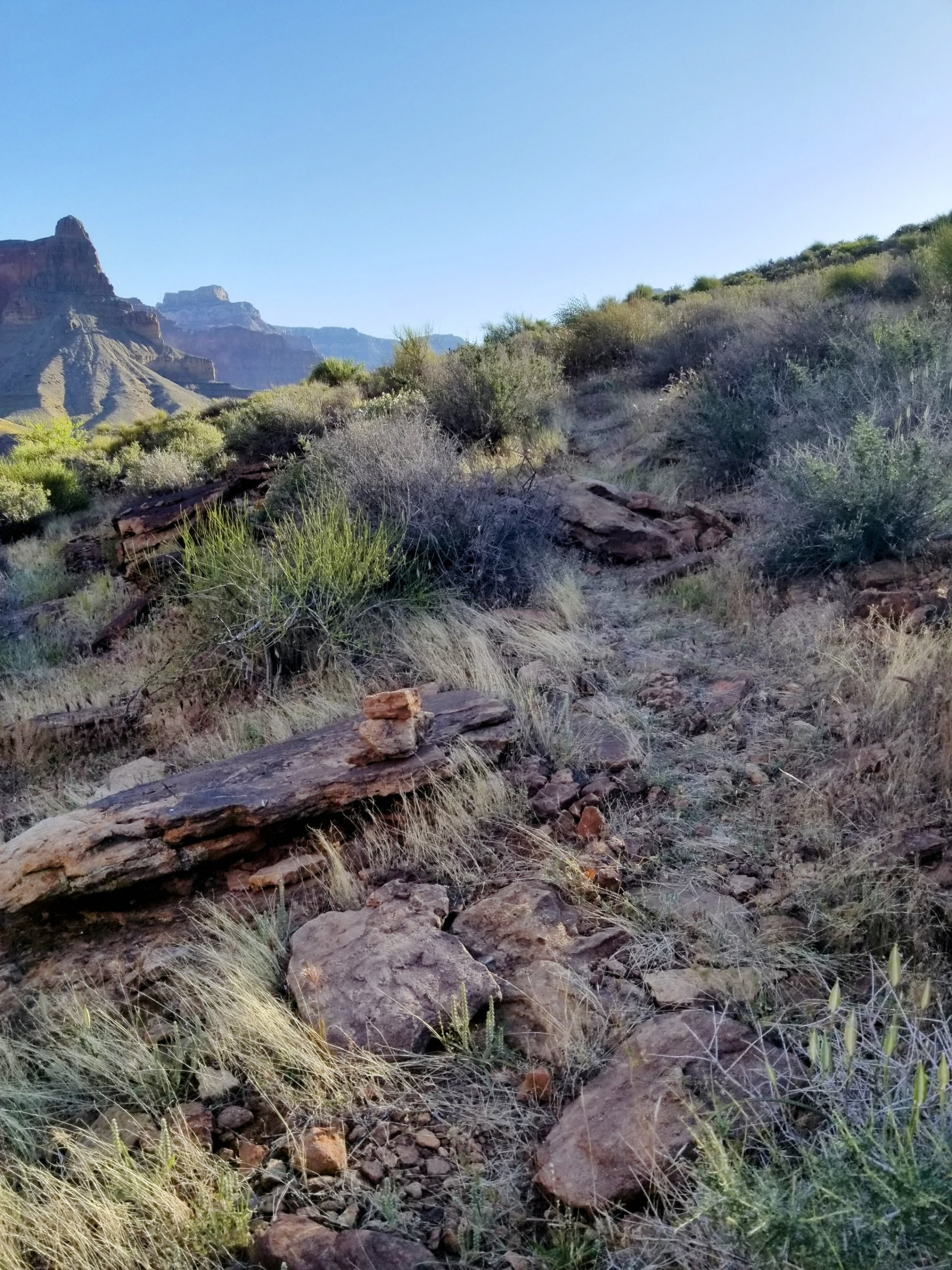 Crossing each of the canyons is always interesting as they are each so unique. I don’t even mind that I’ve crossed through Agate several times before. It brings back fond memories and you know, every season and every time of day is different. The Tonto Trail in total has 33 side canyon to cross. Some are lesser and many are greater. The Gems represent some of the greater ones. Along the way to the back of said greater canyons, there are little side canyons to traverse. These lesser side canyons seem to have a ton of rocks which one must gingerly step over, slowing the pace and making the perception of progress drag out.