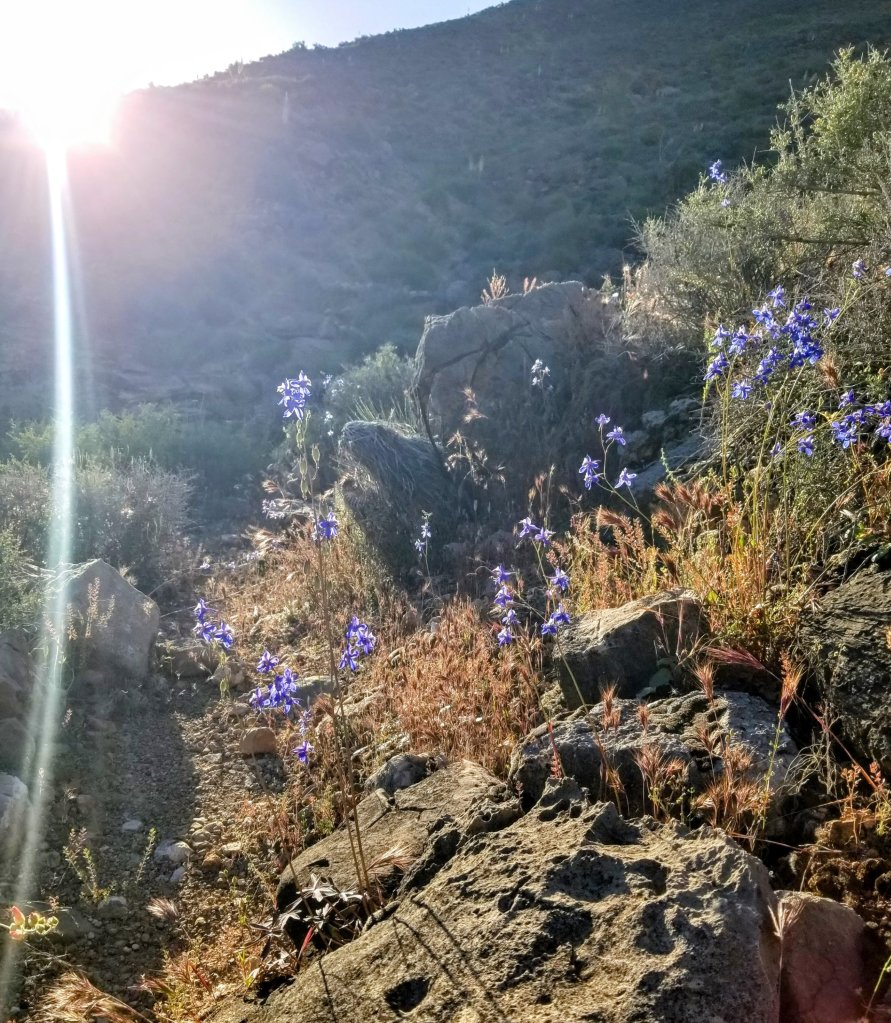 We set off just before 6:00am climbing toward the upper reaches on the West arm of Sapphire Canyon. I love the light here in the morning, especially as the sun casts it’s beams across the land and vegetation at such a steep angle. Before it becomes suffocatingly hot, I admire the sun’s presence and honor the gift of a new day.
