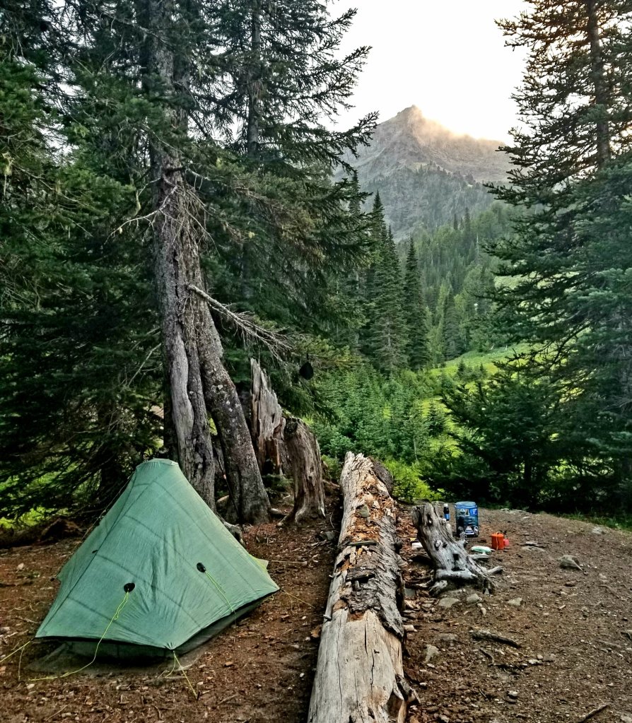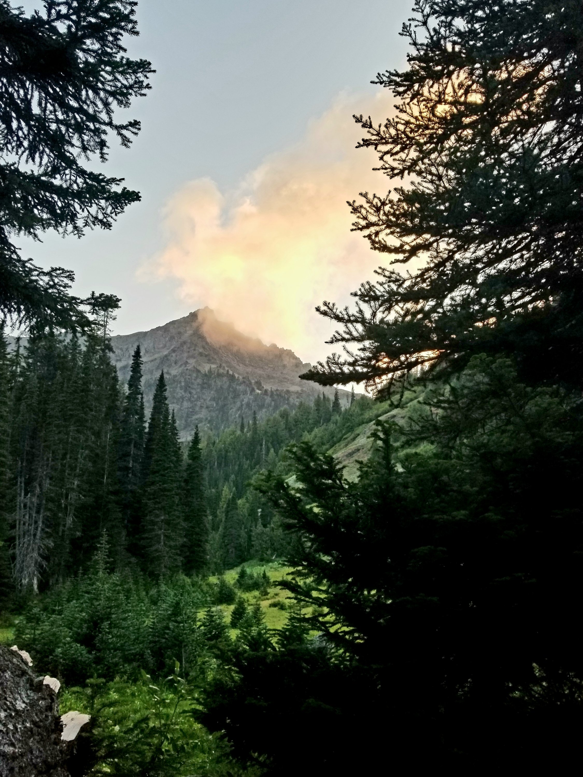 I tend to my body with massage, CBD and stretching while in bed and feel very very sleepy. I debate on whether or not to take Ibuprofen, finally deciding to do it just to de-inflame my body. I have not taken it since last November, I really try not to so that when I need it, it works. I think tonight it will do me some good. Just before turning in for the night I see lovely sunset clouds hovering over the higest peak nearby, they look like cotton candy. The people have all settled down for the night and it’s nice and quiet. I can thankfully hear the rushing creek down below, a perfect lull to fall asleep to. Pretty good first day if you ask me.