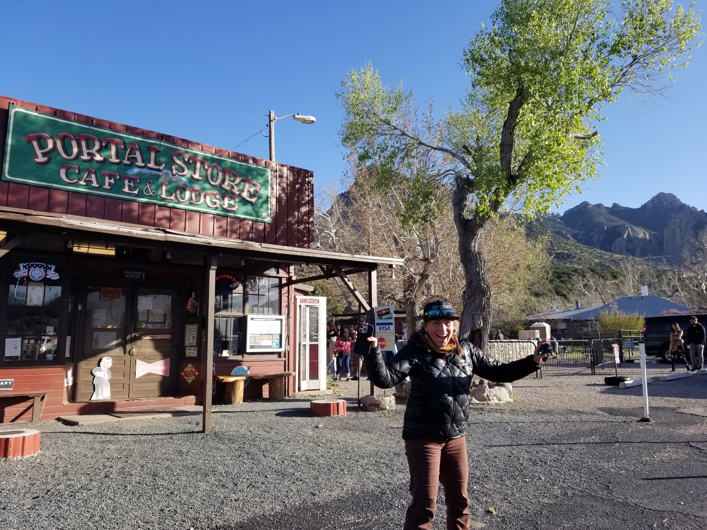We drive into Portal to the General Store to check out what is going on there and purchase a celebratory bottle of wine to take back to camp with us. We drive all around looking for a good place to call home for the night and laugh that it is easier to find a campsite in the back country than out here, but finally we get to the John Hand Campground where you can park and walk in and set up, so that is like luxury for us.
