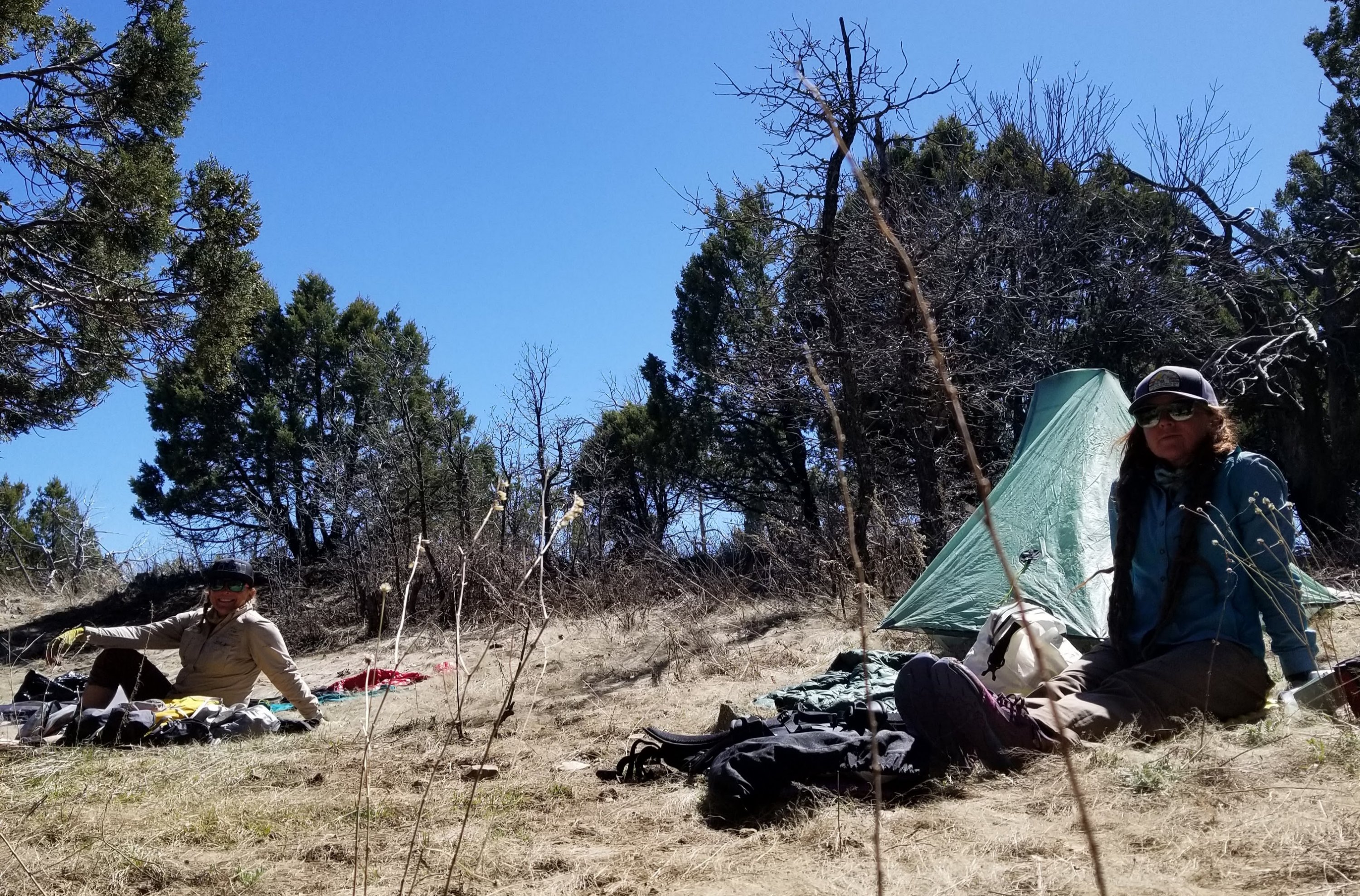 As we converse through our ice crusted tent walls, I see on the map there’s a junction with Forest Rd 42 up ahead, Pinery Canyon Road. Looks to be in about four miles. That is probably going to be our best bet to bail out. It is a long ass road to be walking, and I would hope it’s in walkable condition. Even if it’s bumpy and lumpy, I am sure it beats what we would otherwise be trying to get through if we stay on course. There is so much burn in the area and so much overgrowth, and we are slated to hike to over 9,000 ft where the element of snow will be added. It just doesn’t bode well and doesn’t sound like any fun, not even type 2 fun.