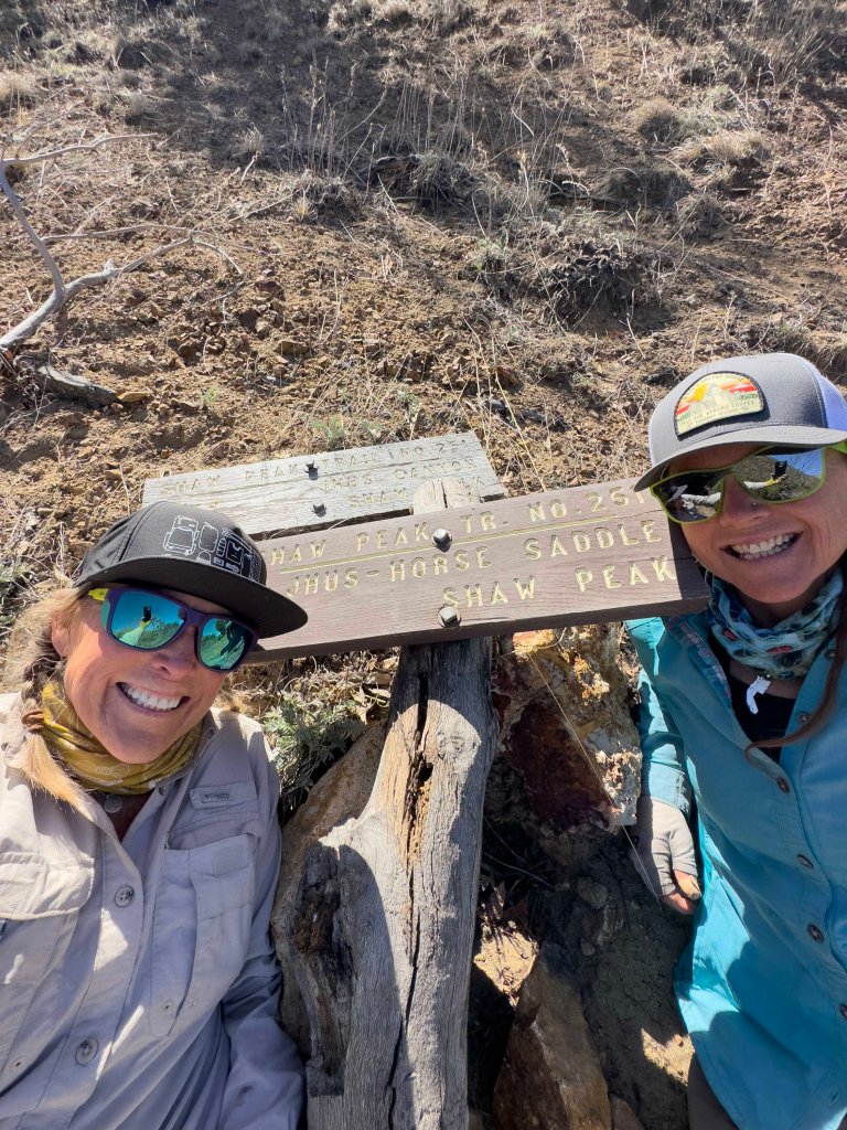 Our first goal of the morning is to make it to Shaw Peak Saddle, which we arrive at by 7:30am. This means we travelled at a speed of 0.7 mi in one hour. You see where this is going. There is a fallen sign on the ground here marking a trail junction. It’s nailed to a downed tree, which we can’t lift. We take our maps out, orient the compass and pull out the GPS. We need to double check our trajectory as the aim is to head to the South East side of Shaw Peak.