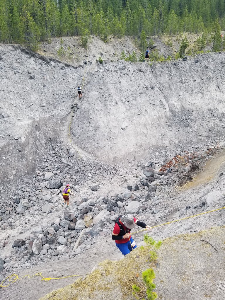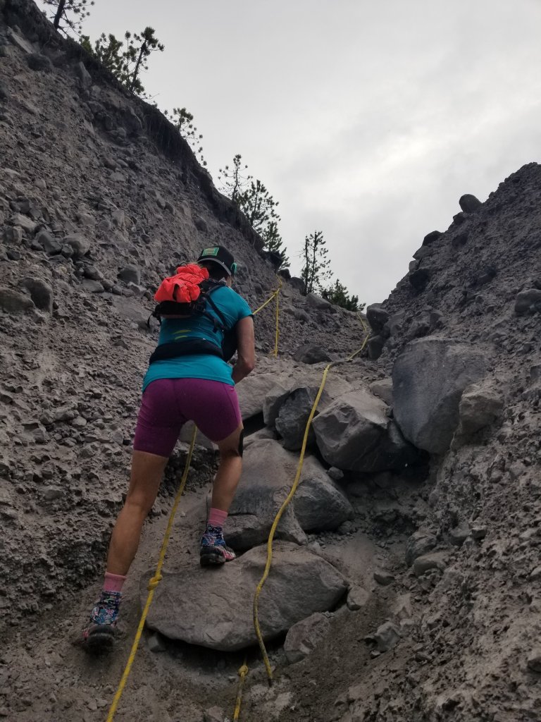 Thus, I encourage to her fuel up with whatever calories she has in her pack, drink lots of water and suggest she power hike the next mile to the Aid Station, fuel up there as well but don’t spend too much time there, then try to jog at a consistent pace for the 4 miles until the final Aid at Ape Canyon. The 4:00pm cutoff there is the time runners must leave by, so I think she will make it. After that, she will be home free, she can even walk the rest of the way if she needs to.