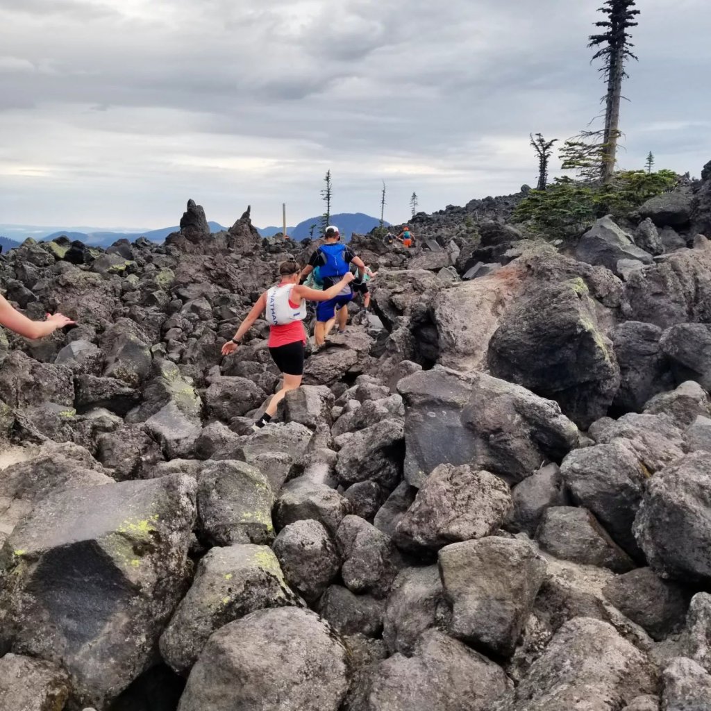 The trail boasts views of the mountain all the way around, dips in and out of lush forest, crosses several creeks and the Toutle River. The terrain is carved with many side canyons and multiple bouldery, jagged lava fields. It is a very diverse course and one of the reasons I felt like I could do this race is my hiking strength moreso than my running abilities with the varied terrain which speaks to my strengths.