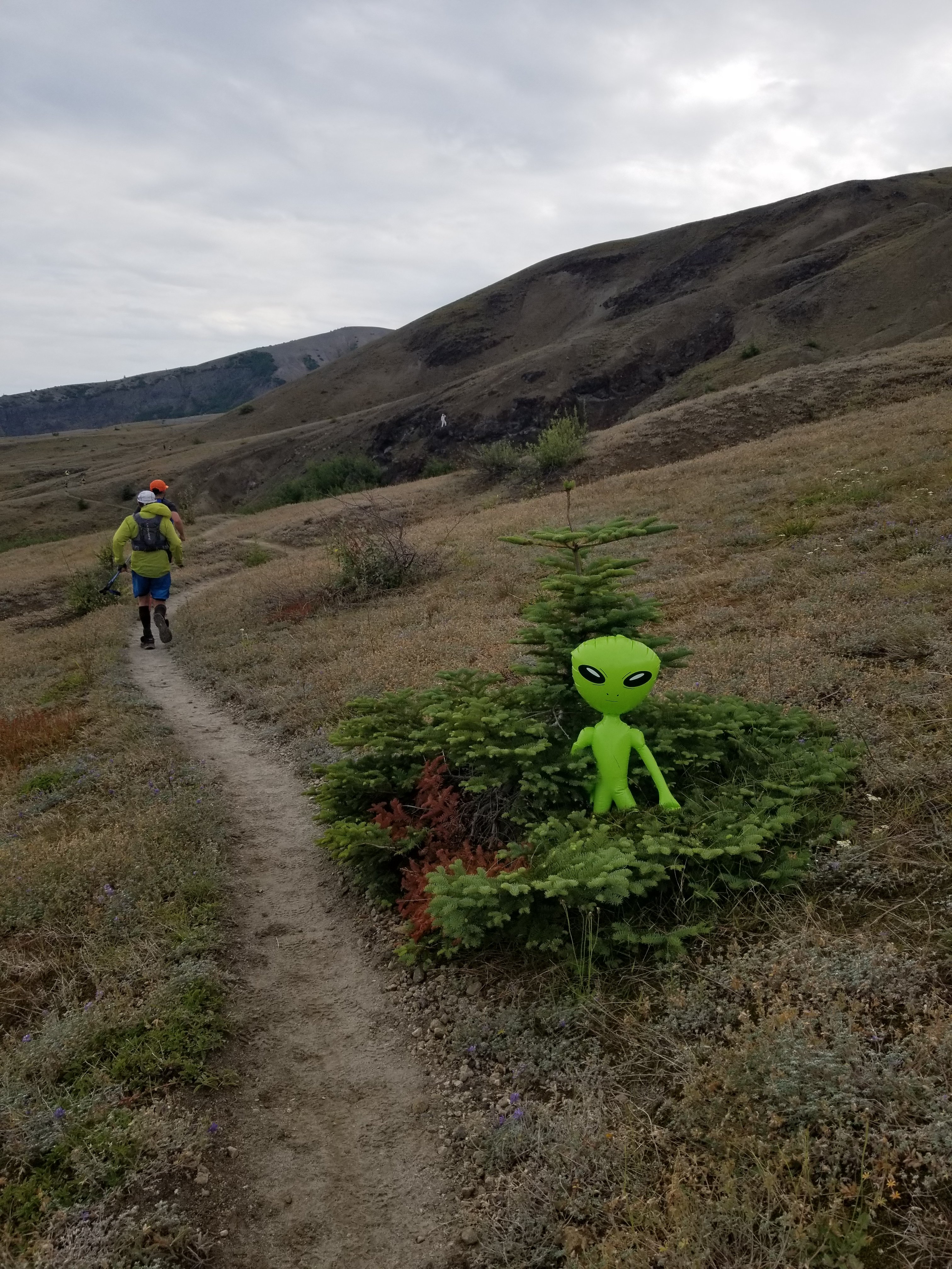 After a couple miles I finally settle on a small, very small, cluster of stubby coniferous trees just off the main trail. It is not perfect but I literally can’t wait, I am getting quite uncomfortable. Of course, as I drop my drawers, three runners come around the bend. I seem to have a knack for this so it does not surprise me in the least and I just have to laugh. I can’t do anthing about it except hope they’ll avert their eyes as they pass.