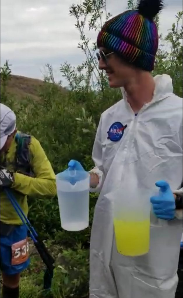 When I arrive at The Spring, it is a full on party happening. The volunteers have definitely put in the effort to make this one super fun. They are dressed up as astronauts and have hidden blow up aliens in the trees. There are folks standing atop the rock formations well above us, dancing to the blaring rave-like music. It is definitely a “pump-you-up” feel which I am sure every runner appreciates at this point.